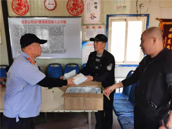 5月1日一早,王大爺帶著一箱口罩來到了沈蘇公司327車隊(duì)。