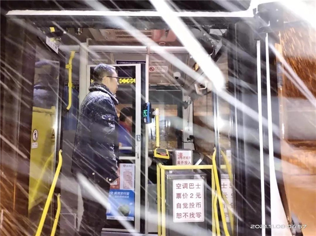 凌晨4點(diǎn)多,第一班車的駕駛員就已經(jīng)提前到崗,清掃積雪,預(yù)熱車輛...