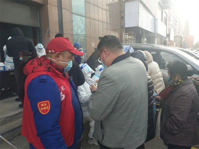 防控疫情哪里需要黨員干部,黨員干部就戰(zhàn)斗在哪里。核酸檢測是防控疫情的必要手段。3月21日早上,通利公司黨委書記、經(jīng)理黃丹準(zhǔn)備到單位上班,到小區(qū)門口發(fā)現(xiàn),小區(qū)被封了,一打聽得知,小區(qū)半夜3點(diǎn)被管控封閉。得知當(dāng)天小區(qū)做全員核酸,便通過微信向社區(qū)請戰(zhàn),對方負(fù)責(zé)同志告訴他非常需要志愿者,但得先做雙彩后再?zèng)Q定是否用。在等待期間,黃丹聯(lián)系了同小區(qū)的集團(tuán)同事:黃河公司的干部陳浩,以及陳浩愛人,集團(tuán)機(jī)關(guān)的張彤馨。張彤馨聽說后高興得跳了起來,立馬準(zhǔn)備上“戰(zhàn)場”。