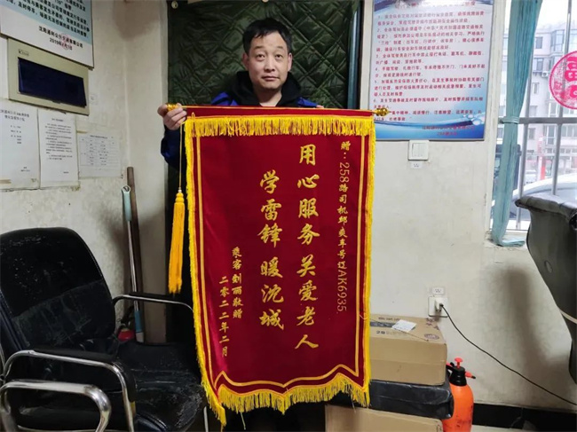2月10日,258路車隊迎來一位熟悉的面孔,她帶著印有“認真負責 拾金不昧”的錦旗,說是要謝謝駕駛員房冬生。