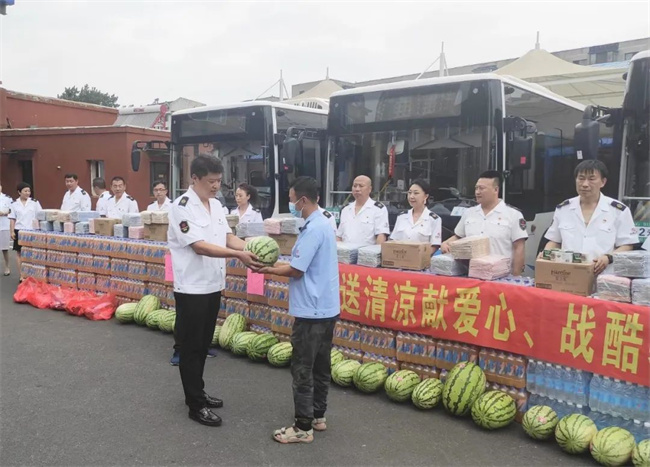 沈蘇公司各車隊管理人員為堅守在高溫一線的職工送去清涼的西瓜。駕駛員們紛紛表示,這些西瓜不僅解了暑,也甜了心,感動之余也讓大家更有干勁,他們將積極克服高溫挑戰(zhàn),更好地保障市民安全出行。