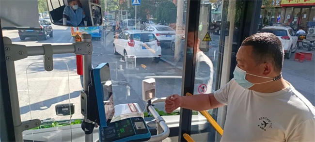 鑫暢公司各車隊(duì)認(rèn)真檢查駕駛員核酸陰性報(bào)告,囑咐駕駛員檢查乘客“防疫四件套”,并繼續(xù)嚴(yán)格對(duì)車輛進(jìn)行消毒,保證車內(nèi)整潔衛(wèi)生。
