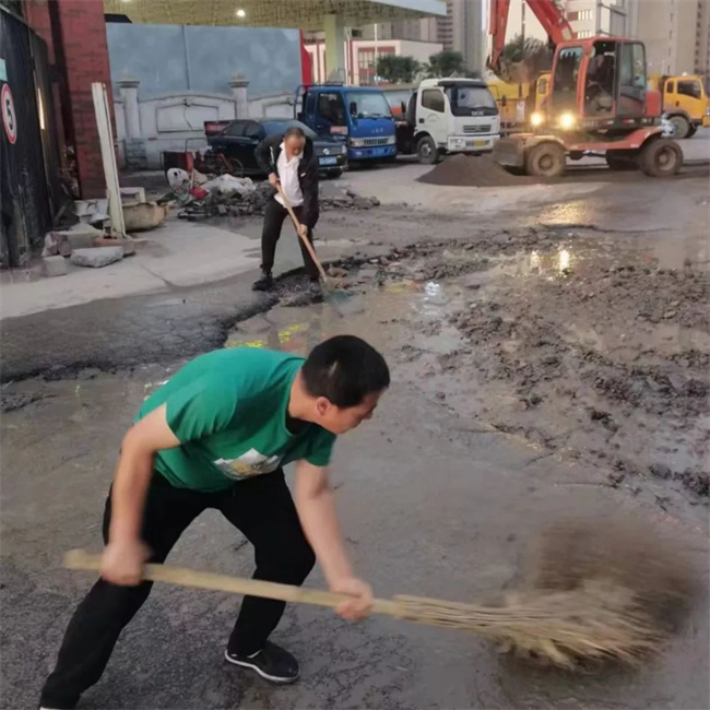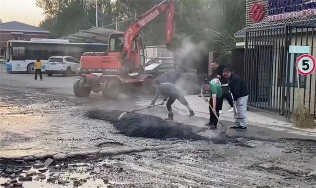 為盡快解決路面問題,消除安全隱患,黃河公司在資金極度緊缺的情況下,本著辦法總比困難多的積極態(tài)度,通過聯(lián)系市政施工隊以進場的方式來修復破損路面。
