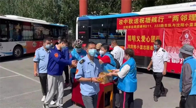 中秋佳節(jié)到來之際,沈陽小藍(lán)愛心公益團(tuán)隊(duì),帶著滿滿的祝福來到211、222路北中街停車場(chǎng),慰問奮斗在一線的駕駛員并送來中秋月餅,以此表達(dá)對(duì)公交人的祝福。