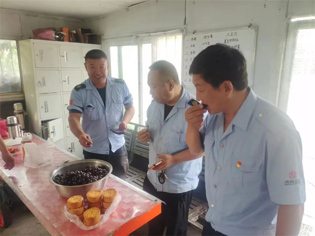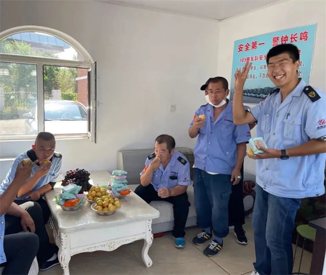 各車隊(duì)為駕駛員們準(zhǔn)備了香甜的月餅和豐富的水果。車隊(duì)就像一個(gè)大家庭,有駕駛員不常吃甜食,兩人分食一塊月餅也其樂融融,大家在車隊(duì)里度過了一個(gè)圓圓滿滿的中秋節(jié)。