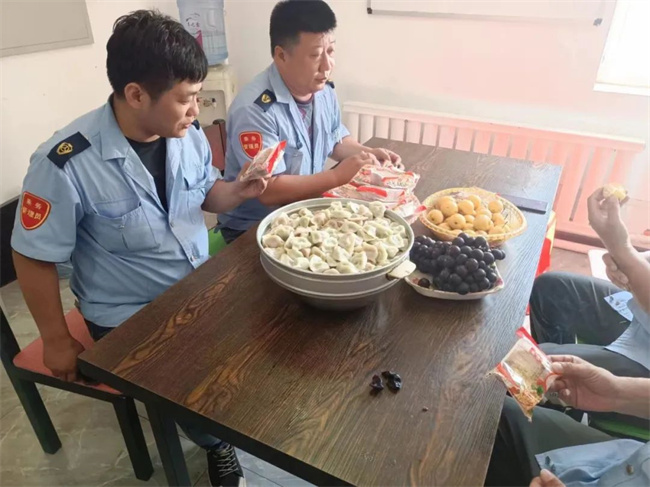 中秋節(jié)當(dāng)天,一分公司所屬各車隊(duì)熱鬧非凡,節(jié)日氛圍濃烈。駕駛員們圍坐在擺滿香噴噴飯菜和各種口味月餅的餐桌前,消散了鄉(xiāng)愁,有的是喜悅的臉龐,整個(gè)站務(wù)室彌漫著輕松快樂的氣息。