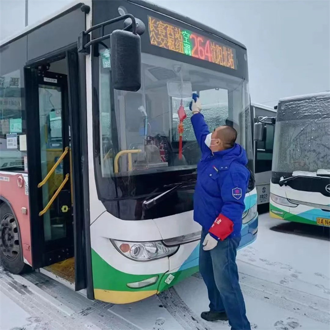 各車隊(duì)管理人員及駕駛員提前到崗,對(duì)車輛、場(chǎng)區(qū)積雪進(jìn)行清掃,嚴(yán)格做好車輛發(fā)車前的各項(xiàng)準(zhǔn)備工作。同時(shí),車隊(duì)管理人員提醒駕駛員,車廂暖風(fēng)系統(tǒng)全部開啟,為廣大市民提供安全、舒適、溫暖的公交服務(wù)。