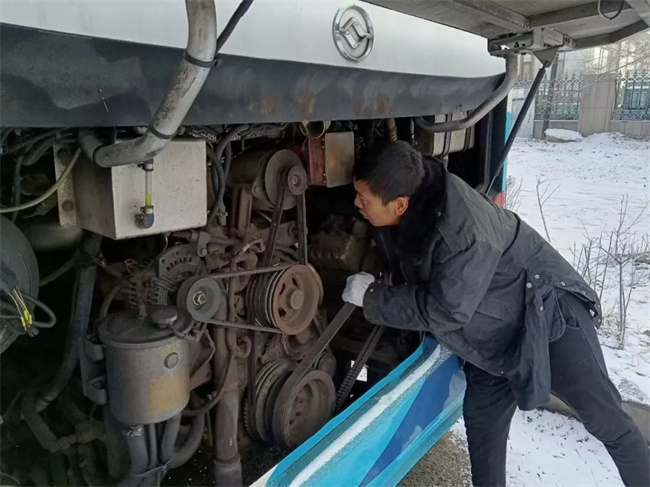 天還沒亮,各車隊(duì)管理人員、技術(shù)人員和駕駛員就抵達(dá)崗位,清掃車輛及場(chǎng)區(qū)路面積雪,排查車輛隱患,確保安全發(fā)車。車隊(duì)管理人員提前抵達(dá)線路易結(jié)冰路段,對(duì)道路結(jié)冰與濕滑情況進(jìn)行摸排,并叮囑每一位發(fā)車的駕駛員注意行車安全。