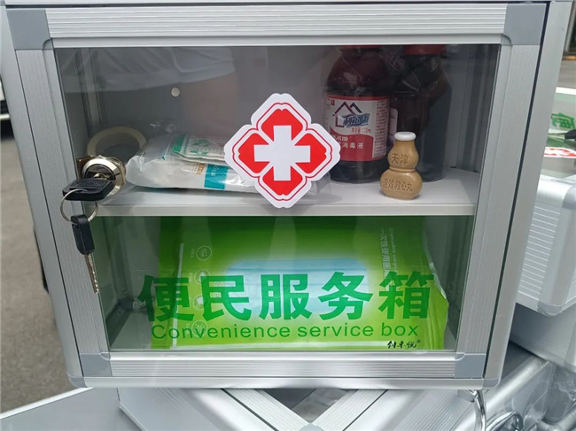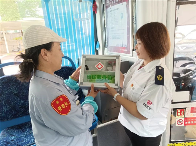 209路車隊(duì)的每臺單車上新增配置了印有“紅十字”標(biāo)志的便民服務(wù)箱,里面放置了口罩、速效救心丸、止血帶、碘伏等日常使用的各類物品。廣大乘客在乘坐公交車時,一旦出現(xiàn)緊急情況,可以得到及時有效的幫助和初級救治。