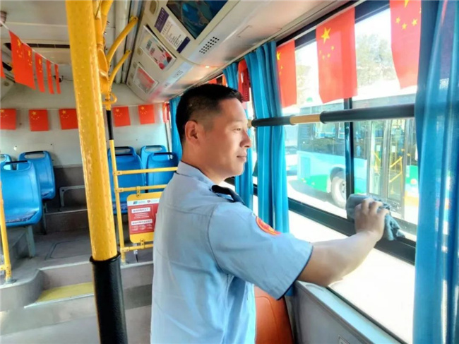 沈蘇、鑫暢公司所屬車隊(duì)精心打造“歡度國慶”主題車廂,在公交車廂內(nèi)掛滿了五星紅旗和紅色貼紙,讓乘客一踏入車廂便感受到濃厚、喜慶的節(jié)日氛圍。