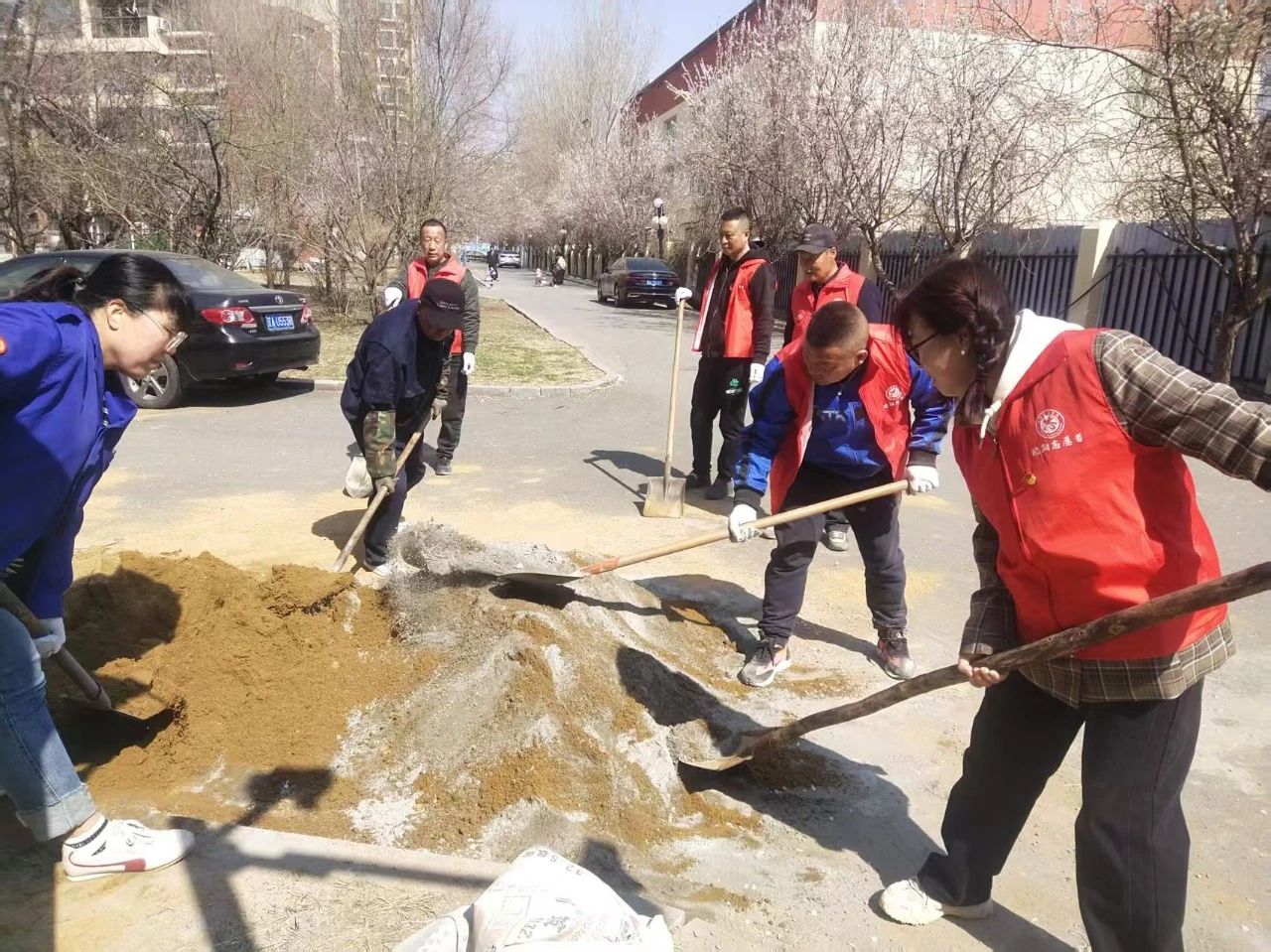 活動(dòng)中,志愿者們對(duì)越冬垃圾、積存垃圾、衛(wèi)生死角等進(jìn)行全面清理,為小區(qū)鋪設(shè)電動(dòng)車停車位場地地磚。大家干勁十足,齊心協(xié)力,圓滿完成了工作,此次活動(dòng)排除了安全隱患,凈化、美化、亮化了社區(qū)環(huán)境,得到了社區(qū)居民們的一致好評(píng)。
