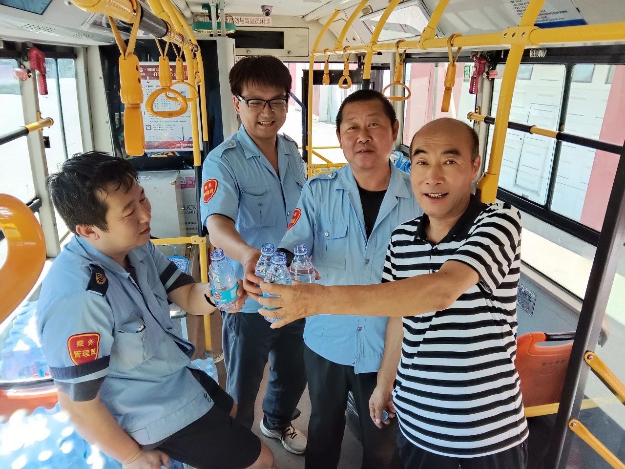 217路駕駛員張玲和228路駕駛員王裕波分別購(gòu)置了30多箱礦泉水,送到車隊(duì),分享給朝夕相處的“兄弟姐妹”,彰顯了公交大家庭的溫暖與團(tuán)結(jié)。