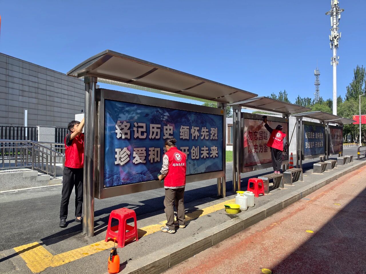 場站公司精心遴選了一批以“銘記歷史,勿忘國恥”為主題的公益畫面,覆蓋望花南街、崇山東路等市內(nèi)多個主要路段候車亭。此次煥新工作累計(jì)出動15人次,共更換公益畫90幅。