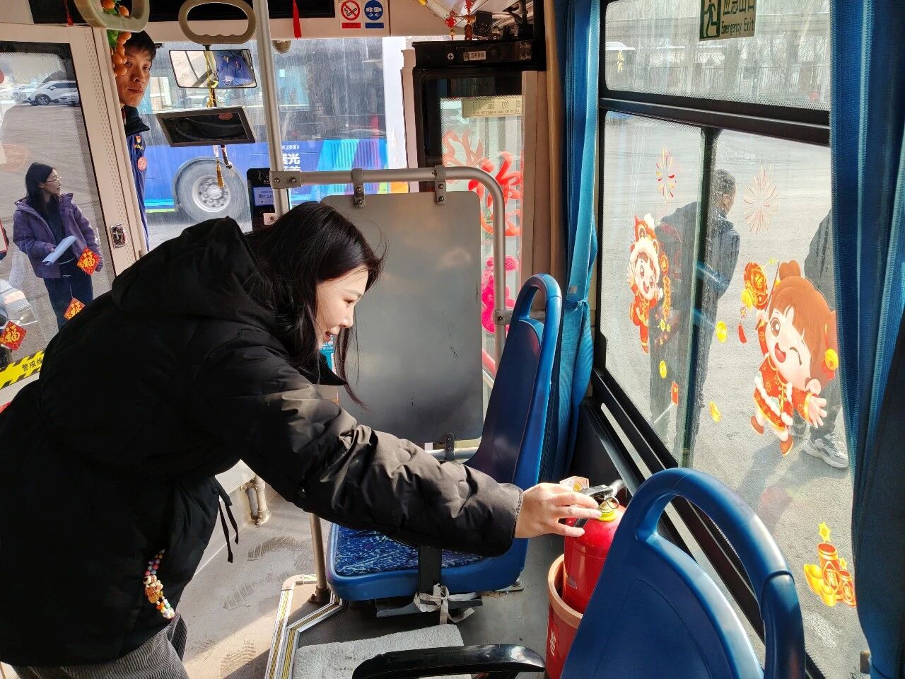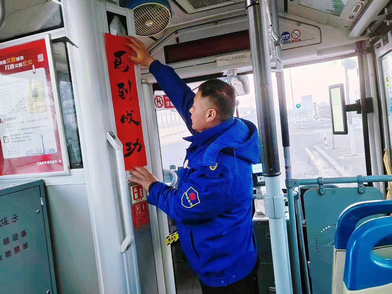 各車(chē)隊(duì)還在車(chē)廂內(nèi)懸掛紅燈籠、窗花等傳統(tǒng)裝飾。特別是271路駕駛員、書(shū)畫(huà)愛(ài)好者唐德忠揮毫?xí)鴮?xiě)“?!弊峙c春聯(lián),筆墨飄香之間,車(chē)廂內(nèi)外洋溢著濃濃年味,也傳遞著公交人對(duì)乘客真摯的新春祝福。