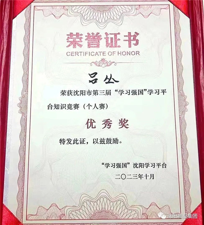 在剛剛結(jié)束的沈陽市第三屆“學(xué)習(xí)強(qiáng)國”學(xué)習(xí)平臺知識競賽(個人賽)中,代表市國資系統(tǒng)參賽的沈陽客運(yùn)集團(tuán)呂叢同志,獲得個人賽優(yōu)...