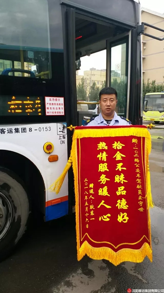 5月25日上午9點(diǎn),乘客耿東一親自拿著錦旗來到康利公司,表達(dá)自己的感激之情。原來在5月16日當(dāng)天,102路駕駛員王宇世在車上撿到了2萬元現(xiàn)金,但他并沒有將財(cái)物據(jù)為己有,而是選擇了積極尋找并最終將現(xiàn)金歸還失主。事后,遼寧衛(wèi)視、遼寧都市和遼沈晚報(bào)等多家媒體相繼報(bào)道了王宇世拾金不昧的先進(jìn)事跡。失主耿先生也曾想多次拿出現(xiàn)金給駕駛員王宇世,來表達(dá)自己的感激之情,但是都被王宇世婉言謝絕了。