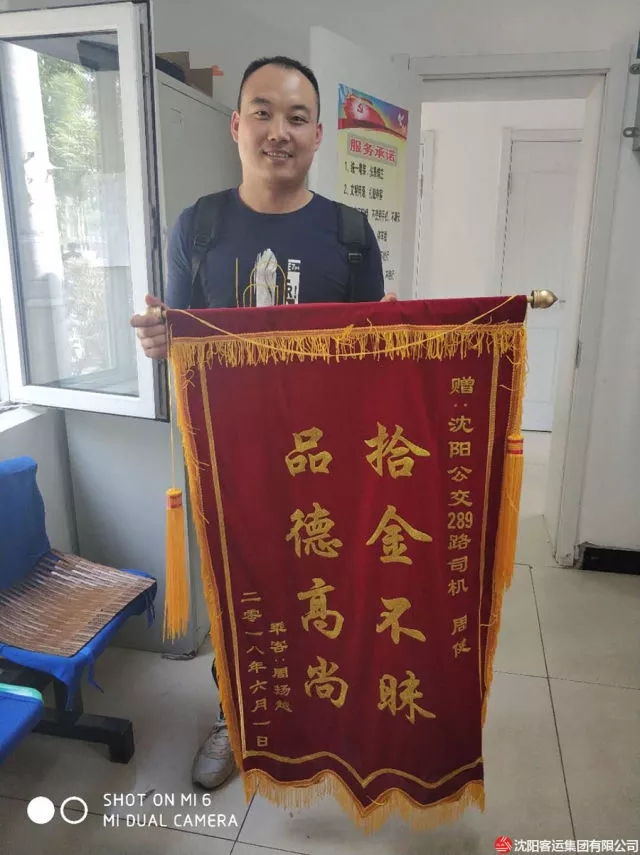 2018年6月2日上午,通利公司289路車隊(duì)辦公室來(lái)了一名男乘客,手拿錦旗滿臉笑容的找到車隊(duì)殷隊(duì)長(zhǎng),感謝車隊(duì)幫忙找回重要的失物,使物品完好無(wú)損,現(xiàn)金、證件等無(wú)一損失,感謝拾金不昧的90后289路駕駛員周健。