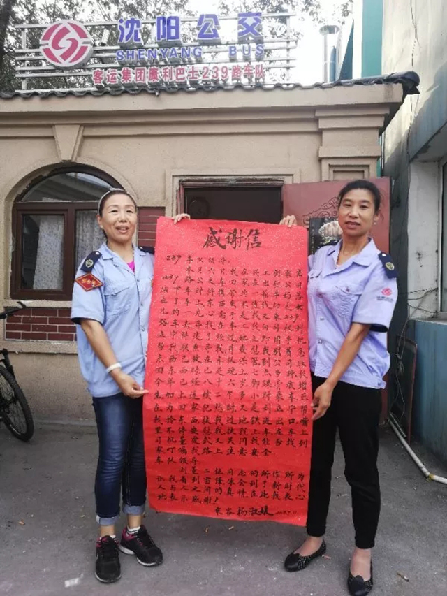 9月11日上午,乘客楊淑媛的女兒把感謝信親自送到康利公司239路車隊(duì)站務(wù)室,感謝駕駛員劉立寧、董愛武對(duì)自己母親的暖心幫助。
