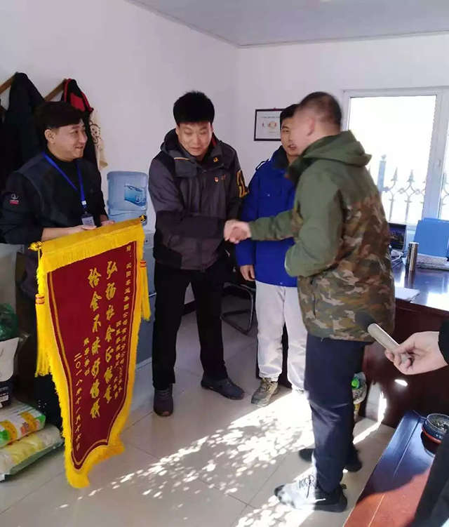 為表達自己的感激之情,第二天,姜先生聯(lián)系了新北方的記者一同來到車隊,并將趕制的一面錦旗送到了沈雁超手里。贊揚他:拾金不昧好搒樣,弘揚社會正能量。金燦燦的錦旗映襯著大家的笑臉,顯得格外溫暖。當(dāng)記者對司機沈雁超進行采訪時,他只是憨厚的說:“這都是我應(yīng)該做的,同時也借這個機會提醒大家,冬季出行著裝厚重,乘坐公交車一定要看管好自己隨身攜帶的物品”。